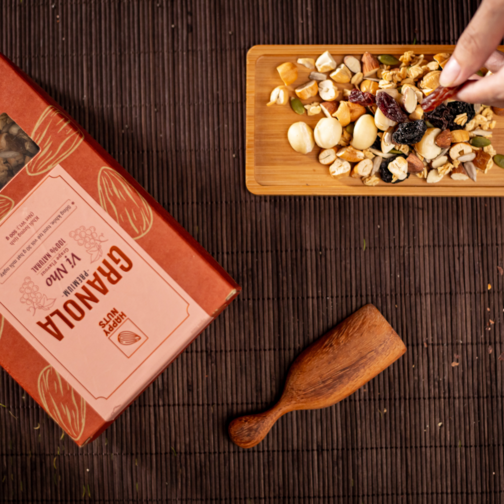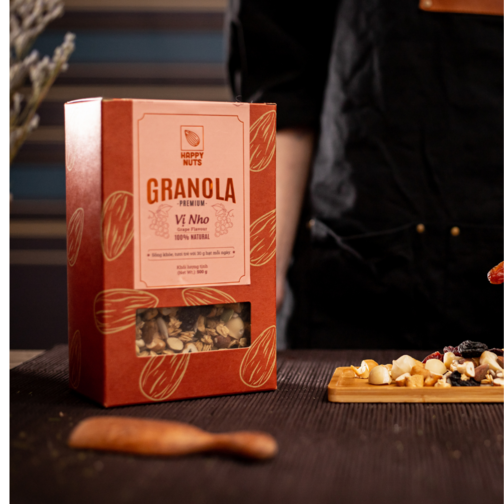 1. Tên sản phẩm: Premium Granola – Vị Nho HAPPY NUTS 500gr