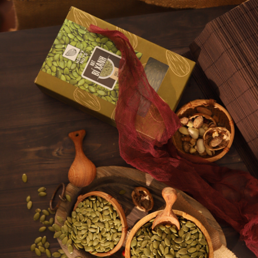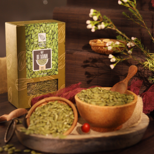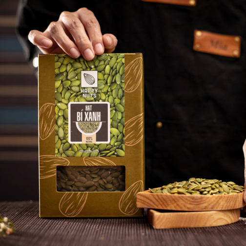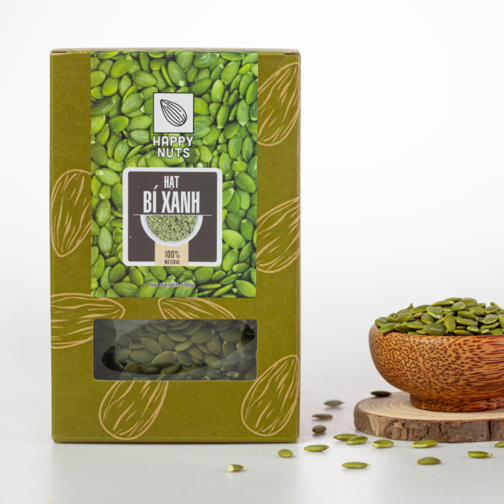 Hạt bí xanh tách vỏ Happy Nuts có xuất xứ từ Ấn Độ, không chỉ giàu dinh dưỡng mà còn có nhiều tác dụng với sức khỏe như giàu omega–3, ngăn ngừa bệnh tiểu đường, hỗ trợ tăng cường sức khỏe tim mạch. Ngoài ra, các chất chống oxy hóa trong hạt còn giúp giảm căng thẳng, tốt cho hệ thần kinh và ngăn ngừa ung thư. ĐẶC ĐIỂM NỔI BẬT CỦA SẢN PHẨM Hạt bí xanh tách vỏ Happy Nuts chứa nhiều vitamin và khoáng chất như magie, mangan, đồng, kẽm, sắt,… Hạt bí xanh cũng chứa các hợp chất chống oxy hóa, ngăn ngừa và loại bỏ các gốc tự do, tăng cường sức khỏe cho cơ thể. Bên cạnh các dưỡng chất như protein, chất xơ, vitamin và khoáng chất, hạt bí xanh còn chứa tryptophan, glutamate, phytosterol và các chất chống oxy hóa giúp giảm căng thẳng, tốt cho hệ thần kinh và ngăn ngừa ung thư hiệu quả. Hạt xuất xứ từ Ấn Độ này được chọn lọc kỹ lượng từ 100% hạt bí xanh tự nhiên. Với hương vị ngọt bùi và rất thơm nên thích hợp cho mọi lứa tuổi, kể cả trẻ nhỏ và người cao tuổi. Với những giá trị dinh dưỡng trong chúng, hạt bí xanh đem lại những tác dụng với sức khỏe như: Bổ sung năng lượng cho cơ thể. Ngăn ngừa tiểu đường. Bổ sung omega -3. Cải thiện sức khỏe tuyến tiền liệt. Cải thiện giấc ngủ. Điều hòa huyết áp và giảm đau khớp. Giảm căng thẳng và nguy cơ trầm cảm.