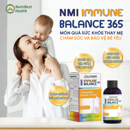 1. Tên sản phẩm: Thực phẩm bảo vệ sức khỏe NMI IMMUNE BALANCE 365 (Thực phẩm hỗ trợ tăng cường sức đề kháng cho trẻ NMI - IMMUNE BALANCE)