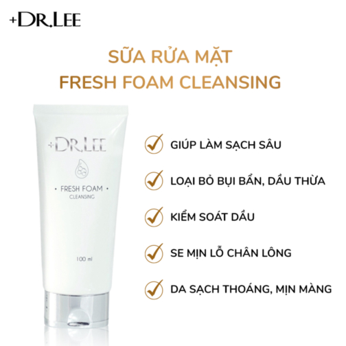 Sữa rửa mặt +Dr.lee Fresh Foam Cleansing giúp làm sạch sâu dầu thừa và bụi bẩn trên da, đồng thời cấp ẩm giúp da mềm mại.